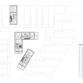As a catalyst for urban renewal, the interior of this inner city block becomes a vibrant and green model of affordable housing. Upgrading the existing built fabric to create revitalized urban density.